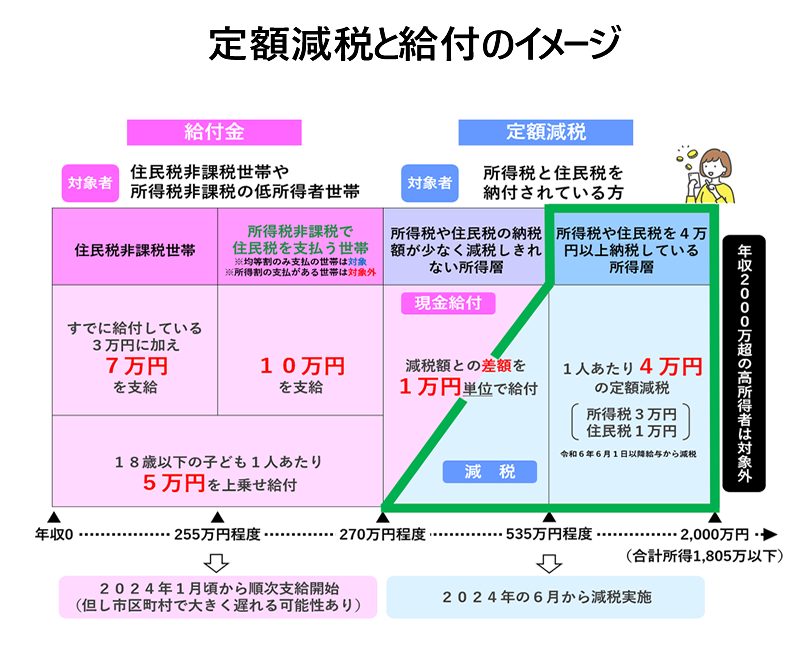 | 【定額減税】2024年6月スタート!主婦・扶養家族の定額減税4万円、家族4人でいくら減税される? …得税・個人住民税を一定額減らす「定額減税」が行われることになりました。 定額減税の概要は以下の通りです。 <定額減税概要> ・減税対象:2024年分の所得税、住民税… (出典:LIMO) |